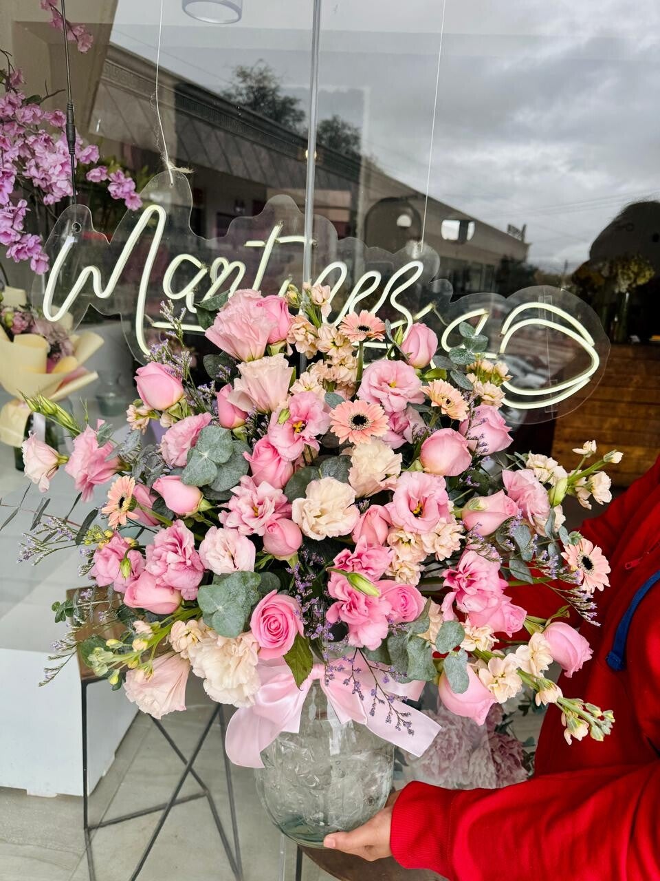 HERMOSO JARRON DE ROSAS LISIANTUS PICOLINAS Y FLORES FINAS